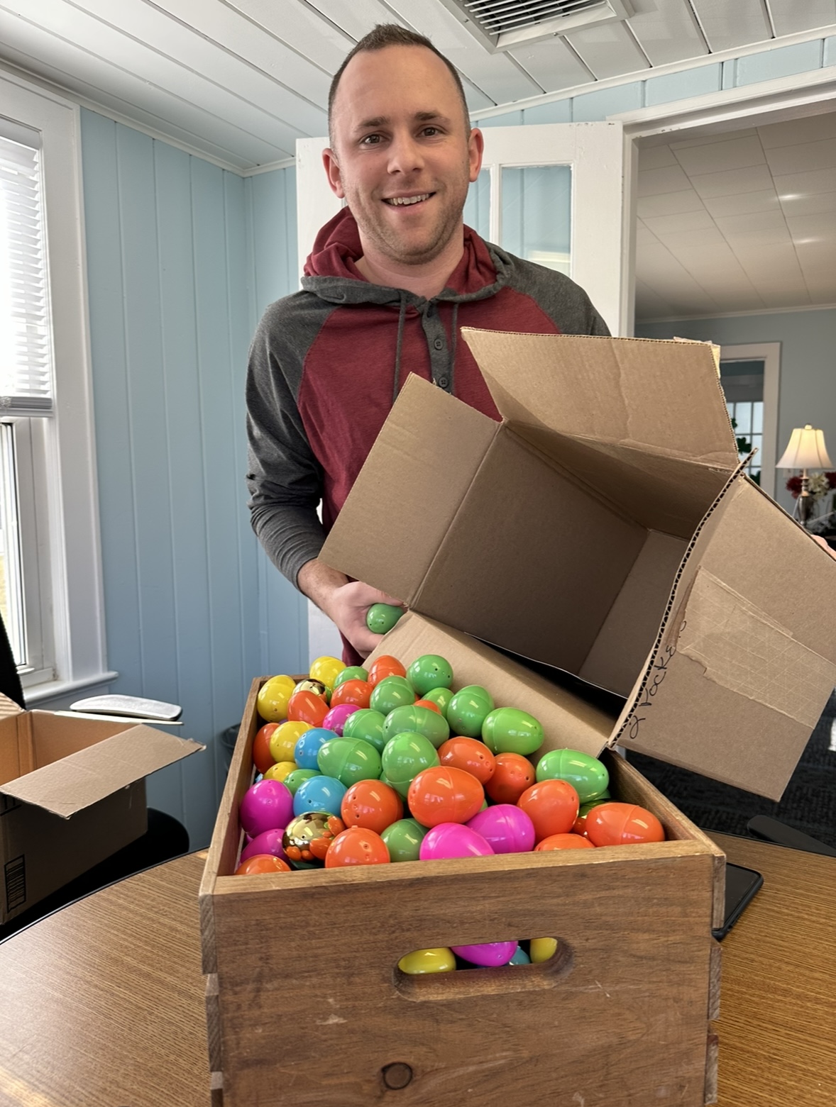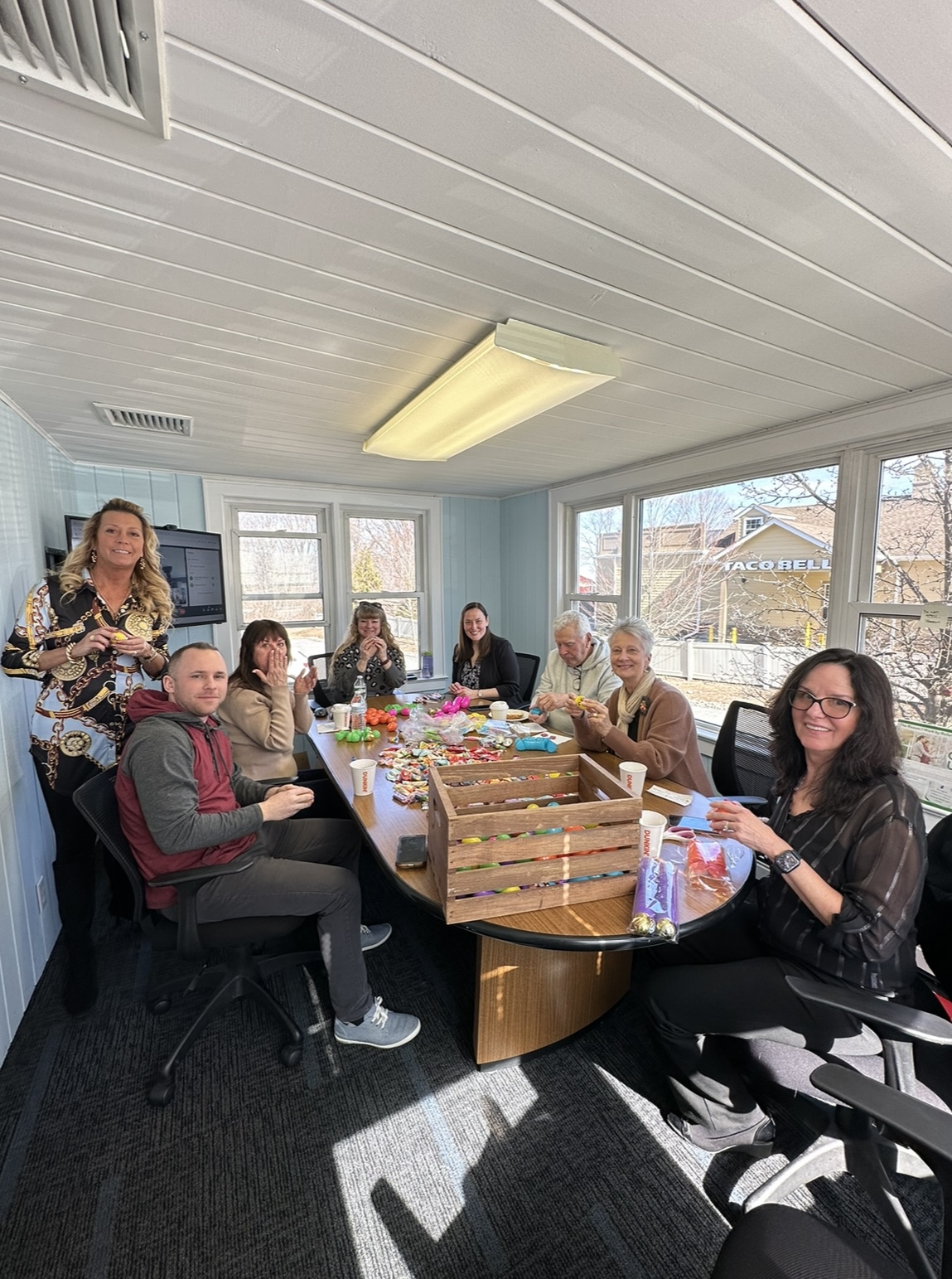 Finally, the wait was over, and our team rushed to the office to see the magic that the Easter Bunny had created. When Barbara Tesa, Kim Lasalandra, Peggy Bradfield, Kristi Anderson, Vikki Garby, Heidi Hyland, Toni Kreusch, and Ted Van Laar walked through the door they couldn’t believe their eyes. Despite the rainy weather, our office was full of festive Spring Vibes. There were decorations, treats, easter eggs, and The Easter Bunny himself!