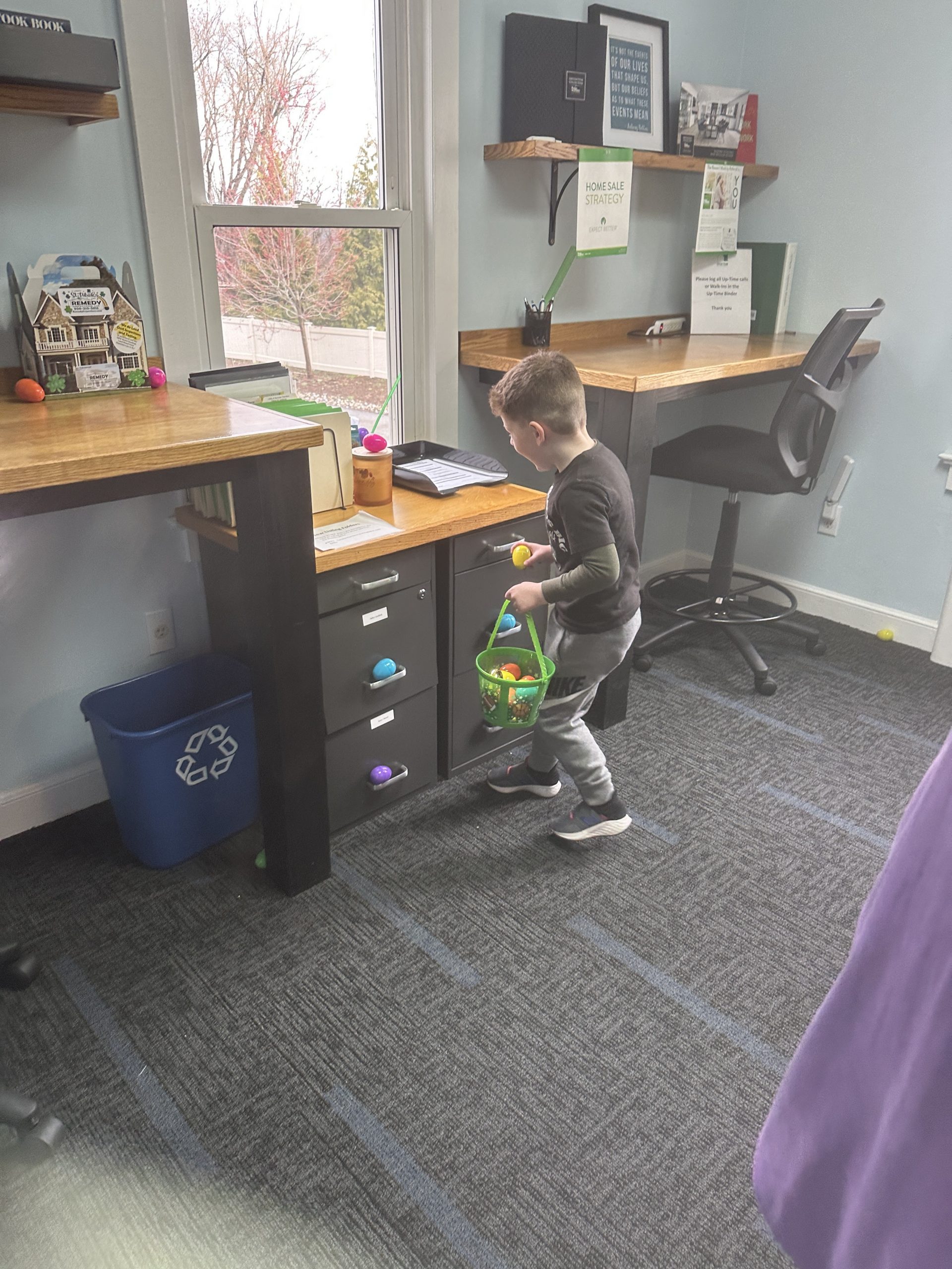 When BHGRE Green Team learned the Easter Bunny would be visiting Vernon a little early this year we “hopped” right into action. On March 9th our agents, Joe Mackey, Kimberly Lasalandra, Toni Kreusch, Kristi Anderson, Amy Klypka, Charles Nagy, Barbara Tesa, and Peggy Bradfield all got together. They spent hours filling eggs for our fuzzy friend. They then spread them around during an easter egg hunt at our Vernon office on Saturday, April 1st. Once all the eggs were filled we could barely contain our excitement.