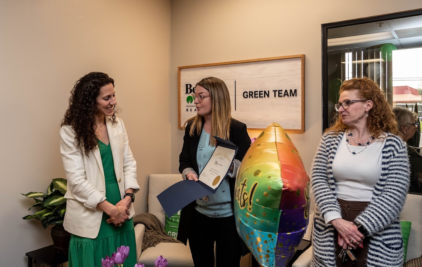 The ribbon-cutting ceremony was a grand success, with a fantastic turnout from the team and the community. Attendees enjoyed delicious refreshments and good company while celebrating BHGRE Green Team’s new office.